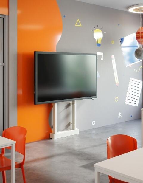 Gulvstativet er et ideelt og stabilt alternativ når du trenger en fast plassering for en interaktiv skjerm, der veggmontering ikke er mulig.