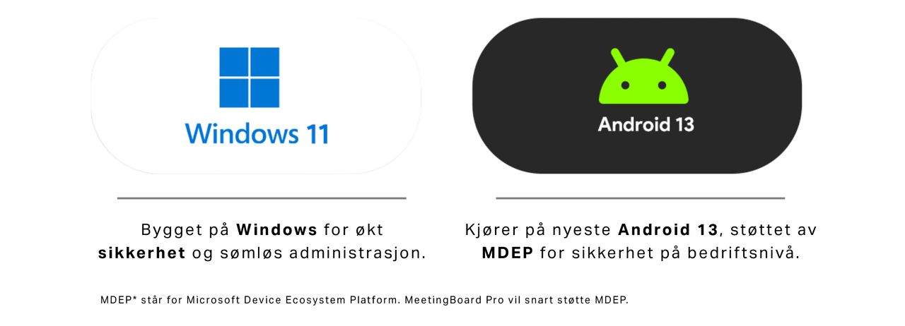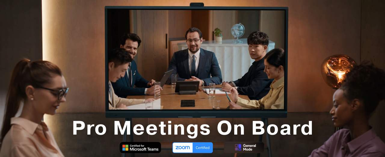MeetingBoard Pro kombinerer videokonferanse, skjerm og smart whiteboard i én elegant alt-i-ett-løsning med 10 minutters installasjon og et ryddig arbeidsområde. Flytt dine smarte møter dit du vil, eller nyt en ryddig veggmontert løsning. Uansett hva du velger, er det en enkel måte å starte et hybridmøte på.