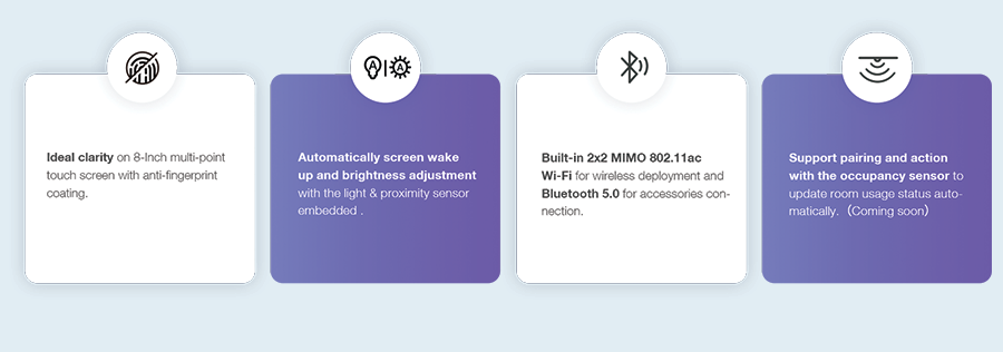 Yealink RoomPanel E2 er en elegant og kompakt 8-tommers berøringsskjerm designet for montering utenfor møterom. Med sømløs integrasjon mot Microsoft Teams og Microsoft 365-kalendersystemer gir den brukerne full oversikt over romtilgjengelighet, møtedetaljer og mulighet for umiddelbar reservasjon – alt med et enkelt trykk.