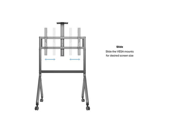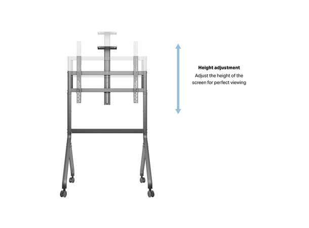 Easy screen height- adjustment, and mobility mean that an optimal viewing position can always be achieved for any presentation, digital -signage or video-conference situation. The heavy -duty castors feature a safety- brake, ensuring the stand cannot roll out of position, whilst the cable- management system ensures a tidy and professional look.